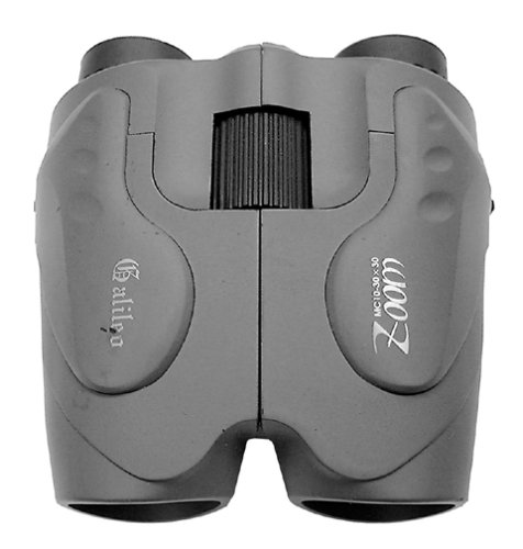 Galileo Compact 10-30x30 mm Zoom Binoculars. SUPER POWER and portability with a "zoom" design to get you UP CLOSE, fast! These Binocs store easily in a bag or purse to follow the action anywhere... though the small, compact construction doesn't compromise performance! BAK-4 Porro Prisms and multi-coated optics provide sharp, bright clarity and reduced glare! While the POWERFUL LENSES get you 30 times closer to all the action! And Galileo's zoom design lets you go from surveying the whole landscape to focusing on a single object in an instant! Just press the lever located at your fingertips and ZOOM you've got yourself a reach-out-and-touch-it CLOSE UP! These mighty mini-Binocs also come with carrying case, neck strap, lens cloth and protective eye caps. Keep your eye on savings: Fully mulit-coated optics to reduce glare and increase contrast and clarity; BAK-4 porro prisms for increased contrast and clarity; Full-range center focus; Water resistant; Fold down rubber eye guards; F.O.V. is 184 ft. @ 1000 yds.; Rubber armoring for protection from the rough stuff; 3"l. x 5 1/4"w. x 6 1/4"h.; Order Now! Galileo 10-30x30 mm Compact Zoom Binoculars